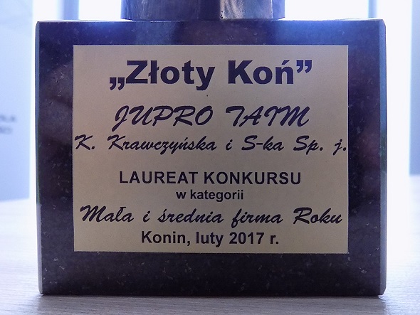 24 lutego 2017r. zostaliśmy uhonorowani przez Konińską Galę Biznesu statuetką ,,Złoty Koń” w kategorii „Mała i Średnia Firma”